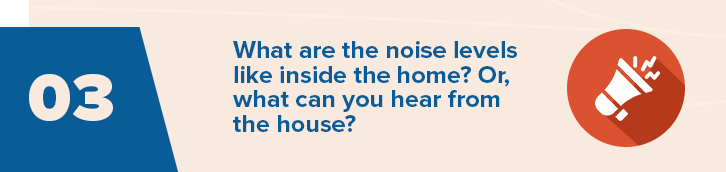 Aside from smell, the noise levels in the home is something you won't easily pick up during a virtual house tour. So don’t forget to specifically ask your agent if there’s any ambient noise from inside and outside the home, especially if the property is on a busy street or near popular public areas such as restaurants and stores. Even if the virus has limited our movements outside for now, you’ll want to know if volume may be a concern. Even the neighbors’ barking dogs can be a deciding factor if a quiet neighborhood is part of your must-haves.